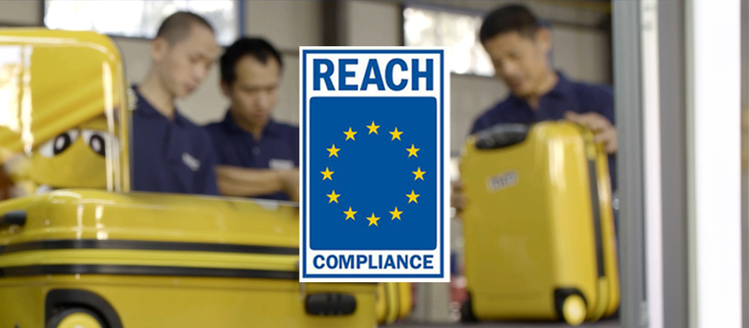 REACH steht für Registration, Evaluation, Authorisation and Restriction of Chemicals. Ein europäisches Gesetz, das vorgibt, welche chemischen Stoffe bei der Herstellung von Waren wie Koffern verwendet werden dürfen und welche nicht.