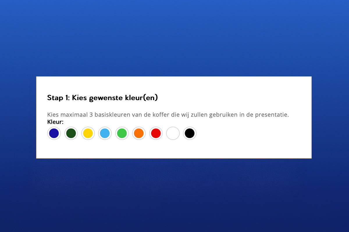Wählen Sie zunächst maximal drei Grundfarben des Koffers, die wir in der Präsentation verwenden werden. Wir nutzen die gewählten Farben, um eine Präsentation in allen drei Formaten zu erstellen.