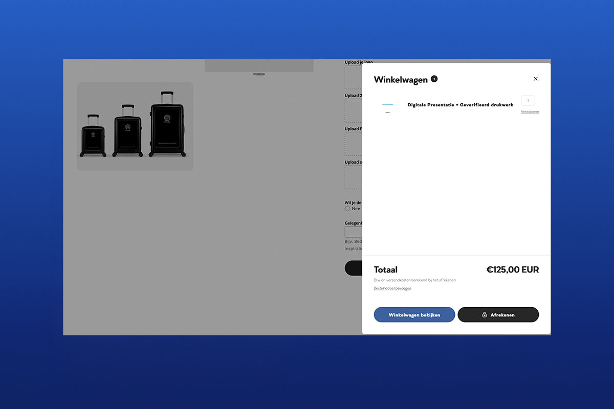 Nachdem Sie alle Dateien hinzugefügt und alle Felder ausgefüllt haben, fügen Sie die digitale Präsentation Ihrem Warenkorb hinzu und schließen die Bestellung ab.