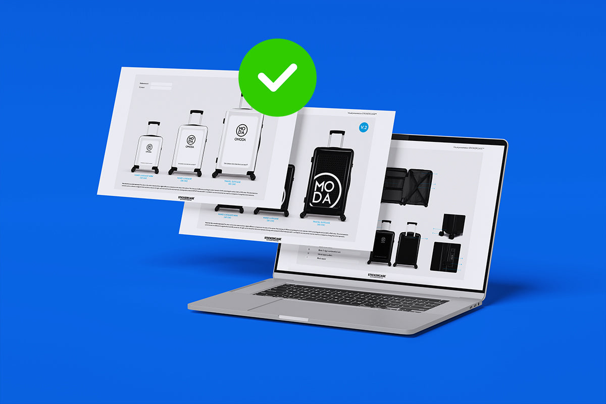 Erhalten Sie eine Präsentation, die aus 3 Farben und 3 Designs besteht. Nach Bestätigung des endgültigen Designs erhalten Sie von uns auch das von unserem Studio verifizierte Druckwerk, mit dem Sie Ihre Bestellung über unser Designportal aufgeben können.