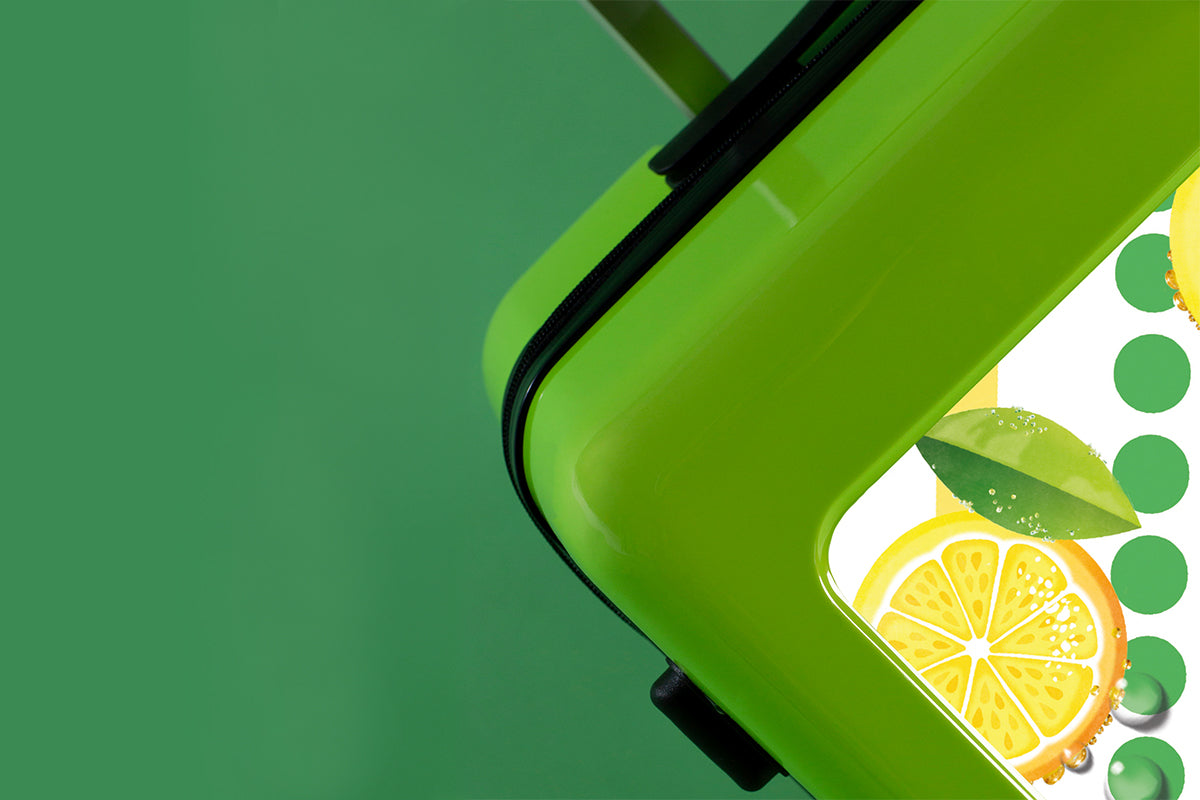 To provide additional protection, the sticker is ‘inlaid’ on the front of the suitcase. The adhesive area on the front panel is approximately 5 mm lower than the rest of the suitcase shell, ensuring the sticker fits perfectly into this space. This added protection prevents damage, even when the suitcase is lying flat. We offer a 3-year warranty against peeling (as long as you don’t tamper with it 😉) and discolouration due to UV light or rain.