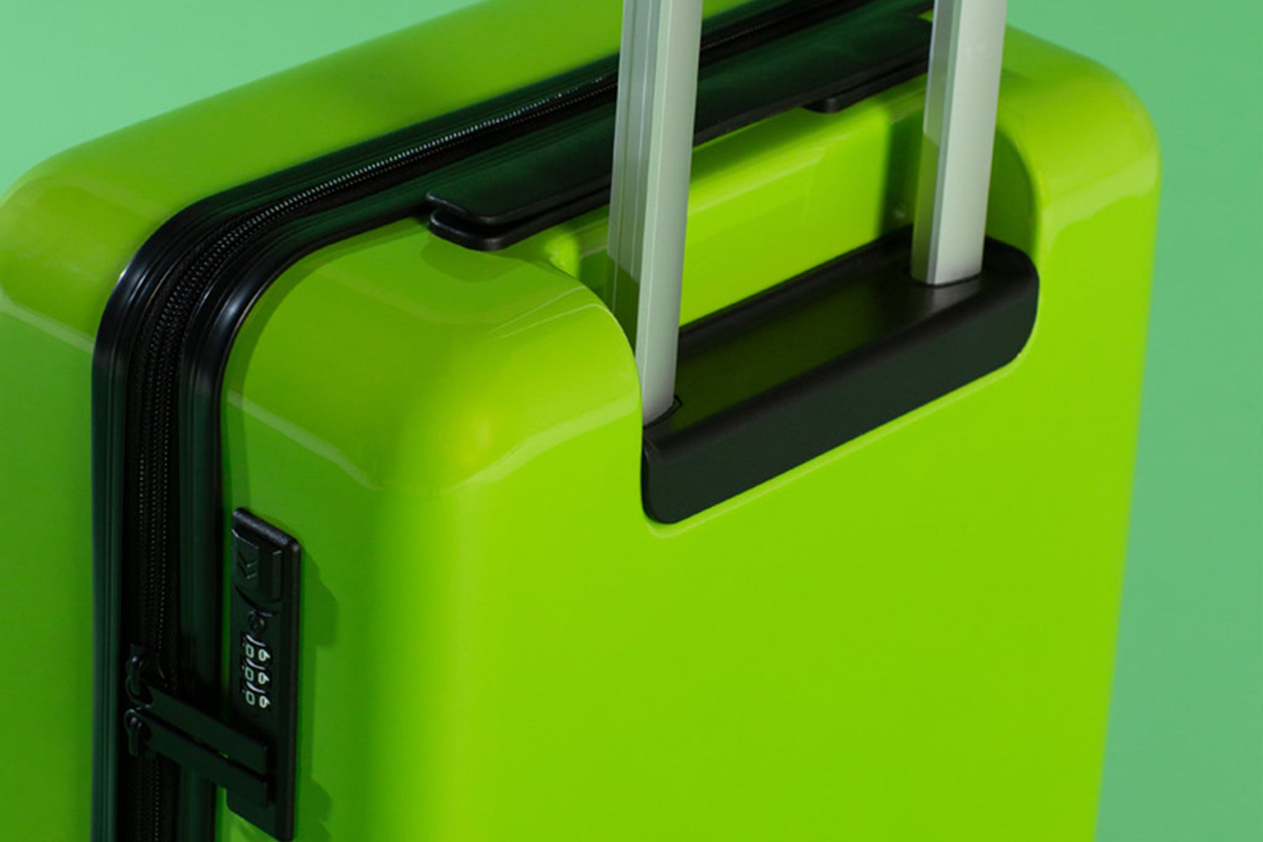 The base material of all our suitcases is ABS, a thermoplastic polymer that is lightweight, durable, and robust. This makes them resistant to scratches, cracks, and dents, ensuring they can withstand rough handling during travel. A drawback of suitcases made entirely from ABS is that they are slightly more vulnerable to extreme temperatures, both high and low, which could lead to warping, deformation, or even cracking. To prevent this, we coat all our suitcases with a polycarbonate film for added durability and stability. Polycarbonate is a strong yet lightweight material that protects the suitcase from extreme temperatures and external impacts, ensuring they can certainly take a beating.